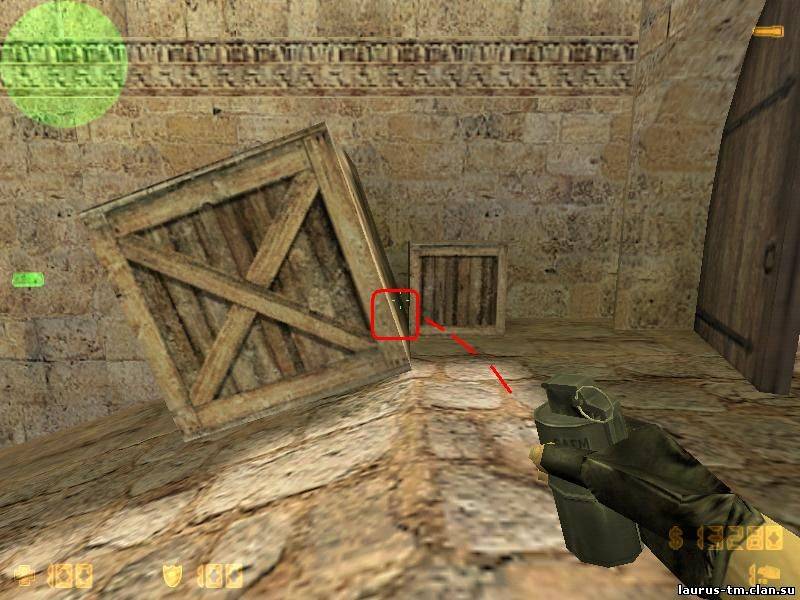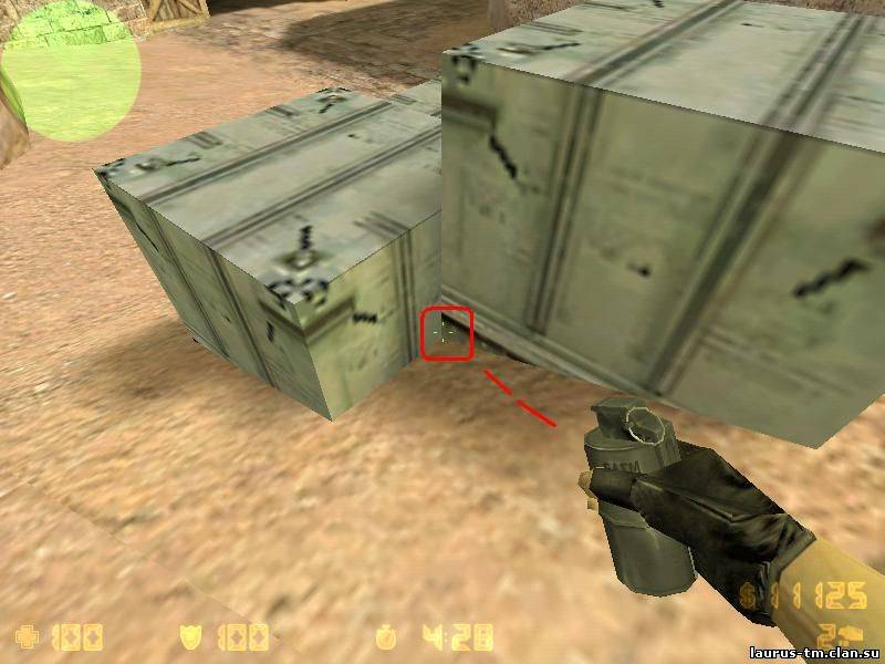 | 1. Самым полезным багом на карте de_dust2 является "дырка" в текстуре, которая позволяет смотреть сквозь стену. Данный баг находится на входе в "банку", когда идешь на длинну от террористов.